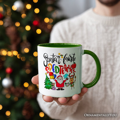 Santaβs Favorite Special Education Teacher Personalized Mug, Children with Autism Christmas Gift with Custom Name