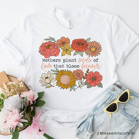 Seeds of Love Mama Floral T-Shirt, White, Natural and Black Retro Tee for Sentimental Mothers