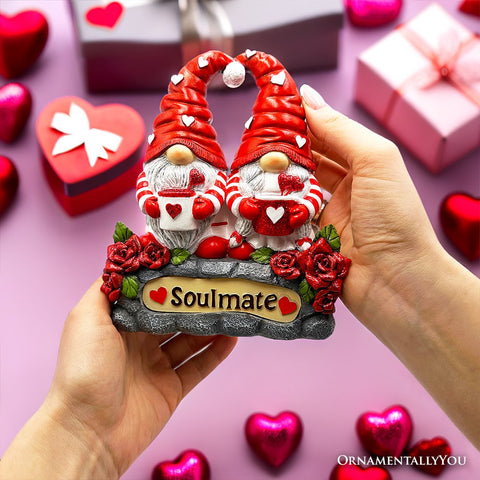 Soulmate Valentine Gnome Couple Solar Powered Figurine, 6" Romantic Room Statue Decoration