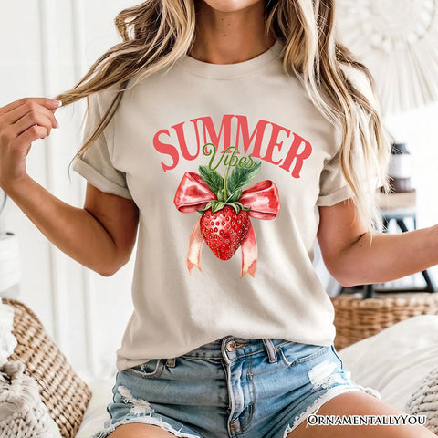 Summer Vibes Strawberry T-Shirt, White, Natural and Navy Seasonal Tee with Coquette Style