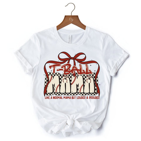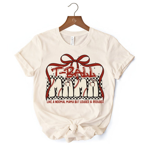 Show off your playful, sporty pride in style with this charming, retro-inspired tee designed especially for proud baseball and t-ball moms! Featuring a sweet coquette aesthetic with a bold red bow graphic, this white and natural-colored shirt effortlessly blends vintage flair with modern mama energy. Whether you're cheering from the sidelines or snapping team pics, this comfy top is perfect for game days, casual outings, or spirited sports events. Made for moms who love supporting their little sluggers with heart and fashion, it’s the ultimate blend of cute, casual, and proud. ⚾🎀📣
