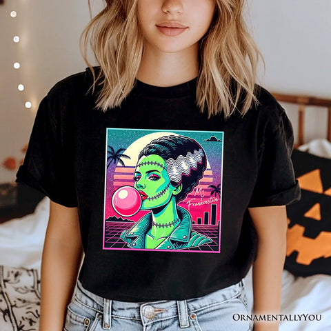 Vaperwave Mrs Frankenstein Retro Neon Horror T-Shirt, Synthwave 80's Styled Classic Halloween Tee