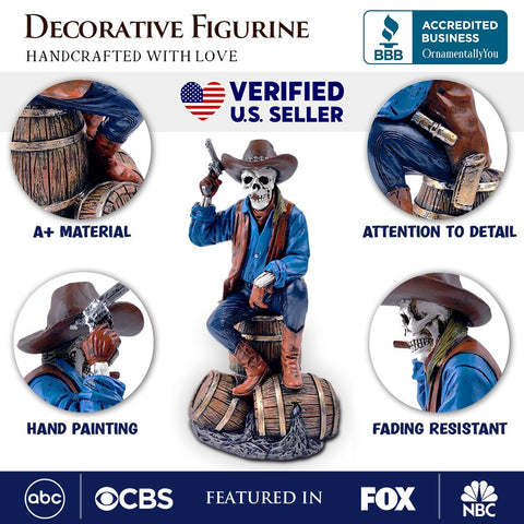 Western Skeleton Gunslinger Statue Figurine, 10" Gothic Cowboy Wild West Home Decor