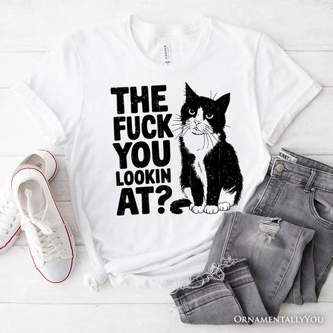 What Are You Looking At T-Shirt, Sarcastic Cat Lover White Tee for Sassy People