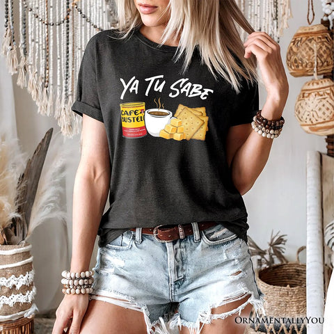 Ya Tu Sabe Café Queso and Galleta T-Shirt, Funny Latin Coffee Tee For Caffeine Lover