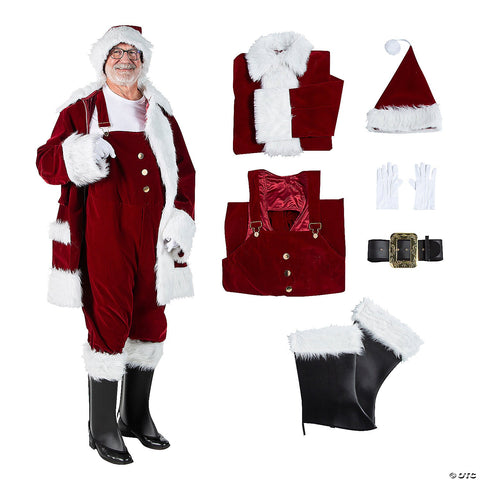Men's Burgundy Velvet Santa Suit with Overalls Costume - XL