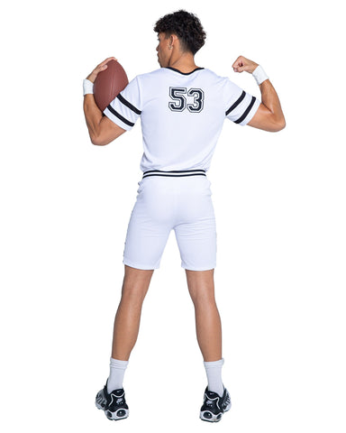 Transform into the ultimate touchdown hunk with our Playboy Football Touchdown Hunk costume! This sizzling ensemble includes a sleek jersey featuring iconic Playboy prints, snug shorts with matching Playboy detailing, and stylish cuffs for that extra bit of swagger. Whether you're hitting the field or scoring big at a costume party, this ensemble will have everyone cheering your name! Play hard, play sexy with Playboy