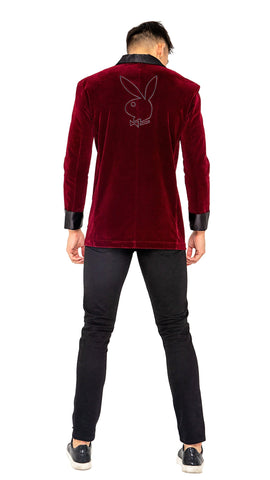 What gentleman wouldn’t want to be the only man in the Playboy mansion? You can enjoy the luxurious and irresistibly sophisticated vibe of Heff himself in this Playboy Smoke Lounge Gent jacket. Crafted of the softest velvet in a signature burgundy color, you’ll be looking for every excuse to slip this jacket on and feel like a million bucks. The built-in shoulder pads help give you a sexy, triangular look, while the silk collar and cuffs are undeniably touchable. Your partner won’t be able to keep her hands off this jacket—or you.