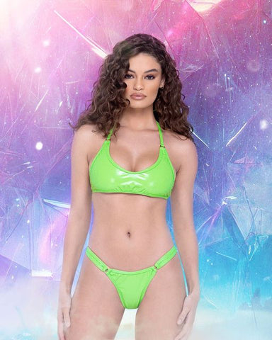 Get ready to rock the music festival and rave scene with our Vinyl Thong Bottoms in Green! These bottoms are perfect for those who want to show off their curves while also making a statement with their fashion sense. Made from high-quality vinyl material, these bottoms are both durable and comfortable to wear for extended periods. The green color is perfect for those who want to stand out from the crowd and make a bold fashion statement. These bottoms come in a thong style, ensuring that you can show off your backside while also staying comfortable and cool in the summer heat. The vinyl material also adds an edgy vibe to your outfit that is sure to turn heads. These bottoms are perfect for a variety of occasions, whether you're heading to a music festival or a rave. Pair them with your favorite crop top, bralette or bodysuit, and some killer heels or boots, and you're ready to dance the night away in style. In summary, the Vinyl Thong Bottoms in Green are a must-have addition to your music festival and rave wear collection. They're comfortable, stylish, and will make sure that you're the center of attention wherever you go. Order now and get ready to turn heads at your next event!