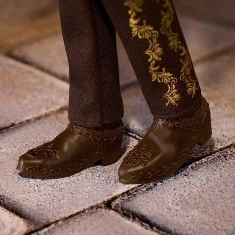 The Barbie Día De Muertos collection honors the festive holiday through a curated exploration of fashion that highlights the culture, rituals, and symbols often used during this day of remembrance. Ken doll's suit is inspired by the cempasúchil, or marigold flower, that is traditionally used in Mexican culture to adorn the altars and graves of loved ones. Signifying a warm welcome to both the living and the deceased, these flowers sprawl in metallic gold trim down his vest and trouser legs. Bright marigolds bloom at his shirt cuffs, too. His look is accented by a cream-colored shirt, sleek ribbon tie, and sombrero. As is customary, his face is painted with a unique calavera design, and he has skeleton bones painted on his hands. This Ken doll is more posable than Día De Muertos collectibles from holidays past. With the added articulation, he can strike a wider range of poses to make for extra eye-catching displays! The 2025 Día De Muertos Ken doll comes in vibrant marigold packaging that is perfect for display and gifting. May he bring joy to your household as you celebrate memories of loved ones! Includes Ken doll, doll stand, and Certificate of Authenticity. For ages 6 and up.