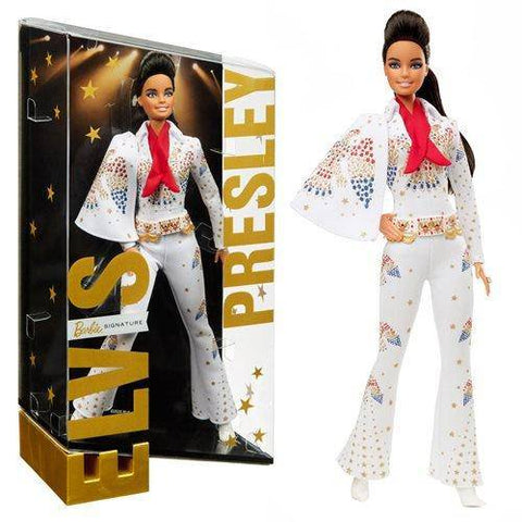 - Displayable packaging makes Elvis Presley Barbie doll a great gift for collectors. Includes doll stand and Certificate of Authenticity.
