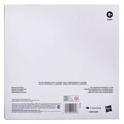 Experience the thrill of Beyblade X, the next generation of Beyblade stadiums, launchers, and tops. The Beyblade X 25th Anniversary Set includes 4 launchers and 4 Attack Type tops with Attack Type Blades: Dragoon Storm 4-60RA left-spin top, Storm Pegasis 3-70RA right-spin top, Victory Valkyrie 2-60RA right-spin top, and Dran Sword 3-60F Attack Type right-spin top. Launch right into battle or reconfigure the interchangeable blades, ratchets, and bits to build your perfect Beyblade top. Beystadium required, sold separately. Beyblade X features the X-Celerator Gear System to level-up your game. When the gear of a Beyblade X top engages the rail of the Beystadium arena, it can super-accelerate into an Xtreme Dash around the stadium for crushing collisions and epic bursts. Launch your tops into fierce clashes against your opponent's to score points. Hasbro Beyblade toys with authentic Takara Tomy die-cast metal tops make great kids gifts for ages 8 and up. Includes: 4 Beyblade X Tops and 4 Launchers.