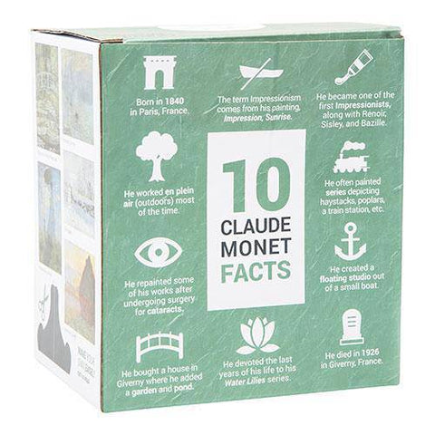 The Claude Monet action figure comes with: Color-changing jacket, pants and frog. Heat-reactive paint (hot water or air). Water lily in his hand. Happy frog in his pocket. 5 masterpieces and 1 cardboard easel. 10 fun facts about the artist on the box. Transparent base. The action figure is 5 inches tall and made of PVC. Warning: choking hazard. Small parts. This is not a toy. it is not designed nor intended for children under the age of 12. Color-changing effect may be slightly different.