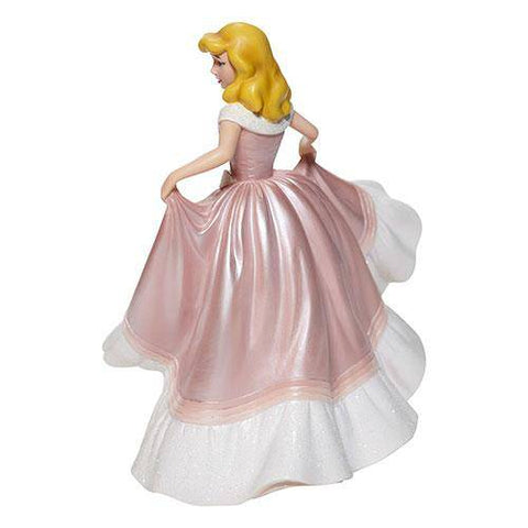 Disney Couture de Force celebrates the 70th Anniversary of Cinderella. She is captured here in her classic pink gown of "what might have been." With the help of her mice tailors, the dress shimmers with satin finishes, iridescent glitter and jewels.