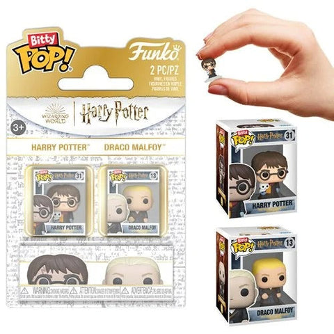 Expand your Funko Bitty Pop! collection with this 2-pack Funko Bitty Pop! of Ron Weasley #02 and Hermione Granger #03 or with this 2-pack of Harry Potter #31 and Draco Malfoy #13!