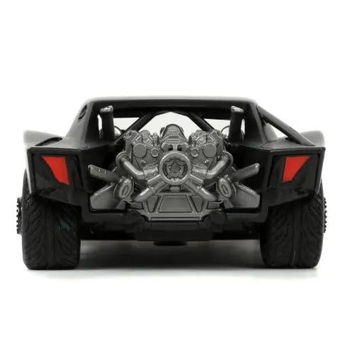 From Jada Toys. To the Batcave! And bring this iconic Batmobile with you. Batman's ride from The Batman takes its styling cues directly from the film. Sleek lines abound and the front hood displays hints of the majestic engine under the hood. This ride features opening doors, working wheels and premium rubber tires. Accompanied by a 100% die-cast collectible Batman figure in cape and cowl.