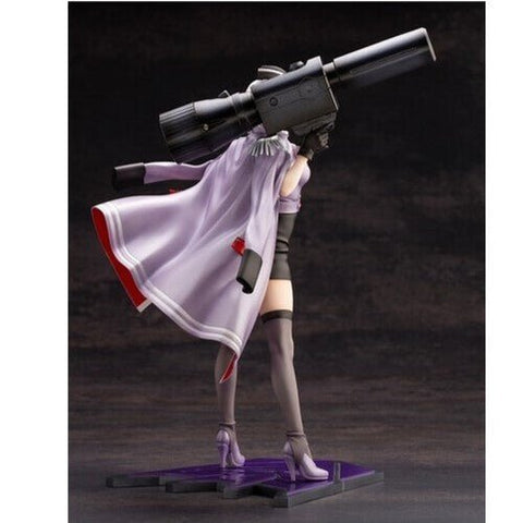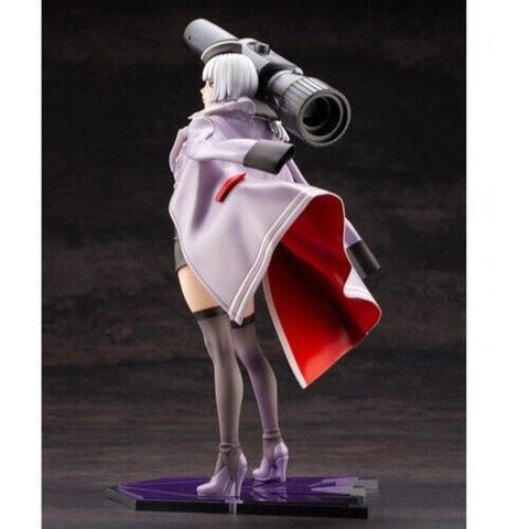 Her bob hairstyle with straight bangs, garrison cap, and dark eye shadow are merely a few of the features that have been carefully designed to capture the feel of the original Transformer. A pearl colorway beautifully adorns her military uniform. A contrasting crude gun metallic color is used to paint the Fusion Cannon, attached to her right shoulder. The details including the handle of the cannon skillfully incorporate the aspects of the original Megatron.