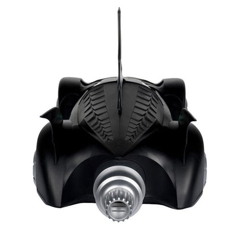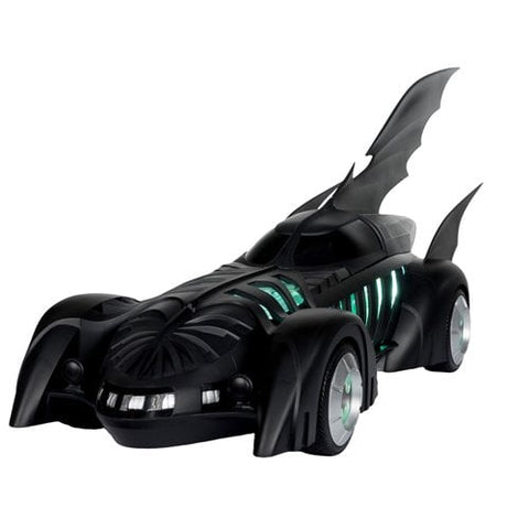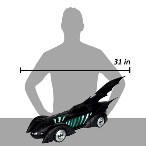 From the 1995 Batman Forever movie comes the iconic Batmobile! The vehicle comes with a 7-inch scale action figure of Batman's trusty butler, Alfred Pennyworth! A display base for the fully articulated Alfred and collectible art card is also included. The Batmobile measures approximately 31-inches long and can fit a figuure in the cockpit. Plus, the Batmobile features lights and sound! The vehicle requires 3x AAA batteries, which are not included. Batman figure is sold separately. For ages 12 and up.