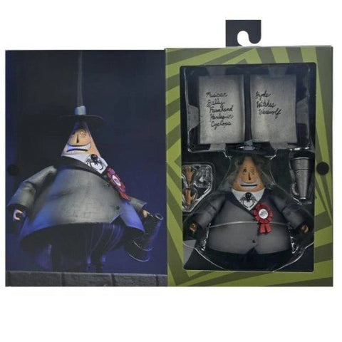 From NECA. Celebrate Disney Tim Burton's The Nightmare Before Christmas! The classic animated film returns to shelves after its 30th anniversary with a set of brand-new Ultimate figures from NECA. Turn Christmas into a spooky season once again by collecting all four action figures: Jack Skellington, Santa Jack, Sally, and the Mayor of Halloween Town! Each fully articulated figure is sold separately with multiple accessories and comes in collector-friendly packaging with opening front flap.