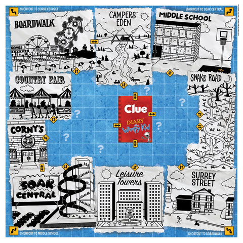Join your favorite “Wimpy Kid” from Jeff Kinney’s popular book series to solve the mystery and win this custom illustrated version of the classic mystery game! In CLUE®: Diary of a Wimpy Kid, Greg Heffley has lost sight of his little brother Manny, and it’s up to you to help recover the toddler before time runs out! Take on the roles of Greg, his family, and friends to figure out WHERE Manny has wandered off, WHO he’s with, and WHAT distracted him!