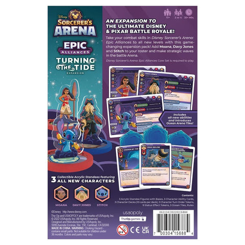 Take your combat skills in Disney Sorcerer’s Arena: Epic Alliances to all new levels with the Turning the Tide expansion pack! Davy Jones, Moana, and Stitch bring new attacks and abilities true to their characters that will change the course of the Arena’s already epic battles. Disney Sorcerer’s Arena: Epic Alliances is the ultimate PvP tabletop game for Disney and Pixar fans and gamers where players can build teams out of Disney and Pixar heroes and villains and compete in an expandable, learn-as-you-go battle arena game.