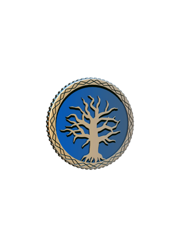 38mm metal coin with colored enamel highlights, featuring symbology and coloring from Frosthaven.