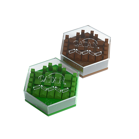 With this smart wooden parts holder you are ready to play right out of the box. No need to count that you have the right number of components anymore! The slots are organized for easy access to your roads, settlements, and cities. Hexadocks looks the part, thanks to their full CATAN color scheme, and are made from quality, durable material. The transparent cover protects parts from falling out, and displays its contents clearly.