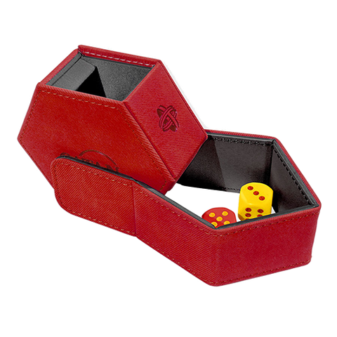 It has an innovative Nexofyber surface and a soft, silver fabric inner lining. The premium materials ensure a comfortable touch-and-feel experience and dice-rolling is enhanced by a pleasant sound. The surrounding flap, held safely closed by strong magnets, can be removed and clips safely to the side of the Hexatower to create a dice-stopper at the gaming table.