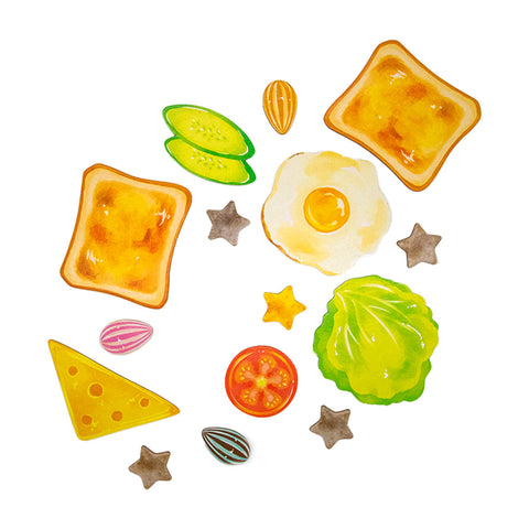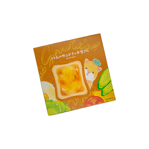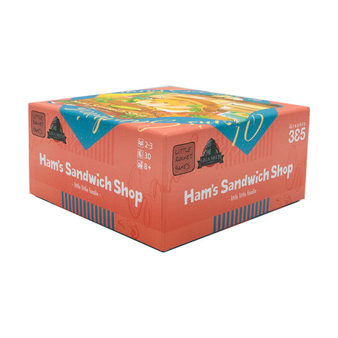 Ham's Sandwich Shop is a very cute board game about making delicious sandwiches with a hamster chef who dives on the bread. The game is played by moving the pieces on the topping tiles arranged in a circle forward one to three steps, acquiring one of the topping tiles, and stacking it on top of the desired bread. The recipe changes depending on where the pieces stop, and when they match the recipe, you can declare the sandwich finished. When the sandwich is successfully completed, the player is awarded a gold star. The player who collects three stars wins.