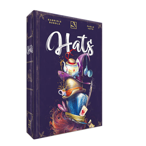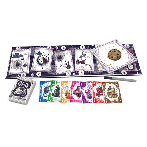 In Hats, two to four players compete to acquire the most outstanding hats by exchanging cards in hand with cards on the tea table board. Each card exchange influences how each hat is scored. Naturally, at the end of the game, the player with the highest score will be declared the maddest!