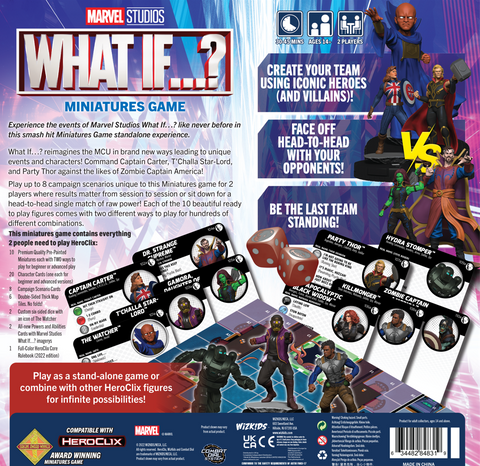 Experience the events of Marvel Studios What If…? like never before in this smash hit Miniatures Game standalone experience. What If…? reimagines the MCU in brand new ways leading to unique events and characters! Command Captain Carter, T’Challa Star-Lord, and Party Thor against the likes of Zombie Captain America!