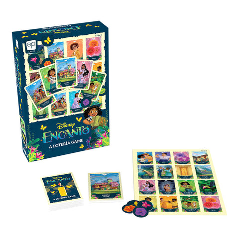 Gather around for fun and fortune with Loteria: Disney Encanto! Join your favorite Encanto characters, items, and places and get ready to play in this english-spanish version of bingo, where players create rows or patterns out of matching images on their tablas to win! Let luck and learning charm the whole family with this unpredictable and educational game for Encanto fans of every generation!