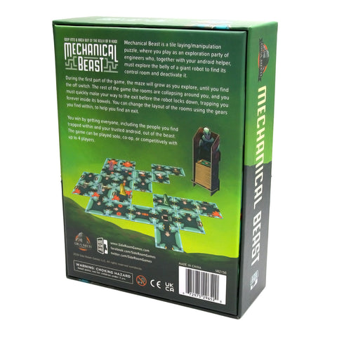 [Deep Into and Back Out of the Belly of a Huge] Mechanical Beast is a tile laying/manipulation puzzle, where you play as an exploration party of engineers who, together with your android helper, must explore the belly of a giant robot to find its control room and deactivate it.