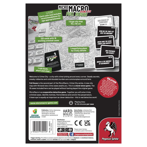 Crimes have taken place all over the city, and you want to figure out exactly what's happened, so you'll need to look closely at the giant city map (75 x 110 cm) to find all the hidden information and trace the trails of those who had it in for their foes.