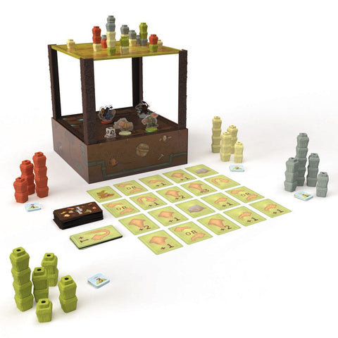 Moles have traveled from all over to compete in the annual Mountain Maker tournament. In this light strategy game, competitors show their skill based on how high they can pile their molehills, and by how many mountains they control. The mole that can build and control the most mountains out of molehills over 6 rounds will be declared the ‘top tunneler’ and will win the game. Features a two-level game board and full-color acrylic standees for each mole!