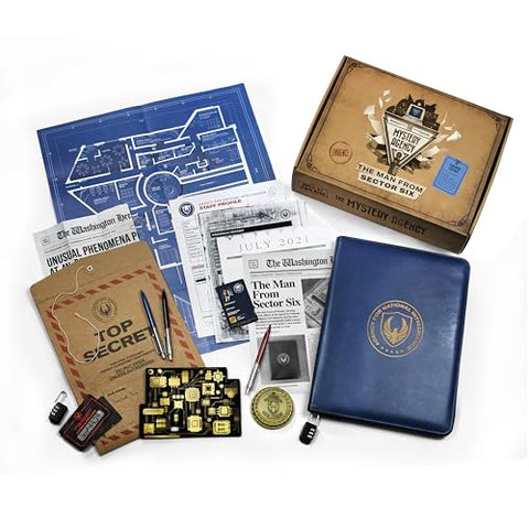 When you open the box, you’ll discover a newspaper cutting and a locked, official-looking document portfolio that was left behind by a mysterious agent who suddenly appeared and then disappeared again. You’ll also learn that the agent left behind a dire warning about a monumental peril facing humanity, setting the stage for an urgent and totally immersive challenge.