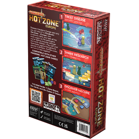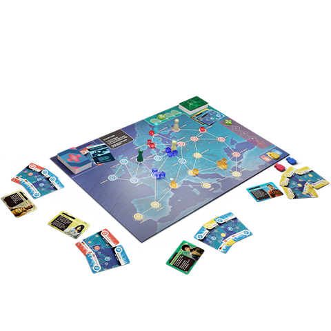 In Pandemic: Hot Zone – Europe, players work together against the game to discover cures for three diseases that threaten the continent. Travel from city to city treating local populations, preventing outbreaks, and sharing research with your team. Use your character’s unique ability to get ahead of the game and execute the perfect team strategy!