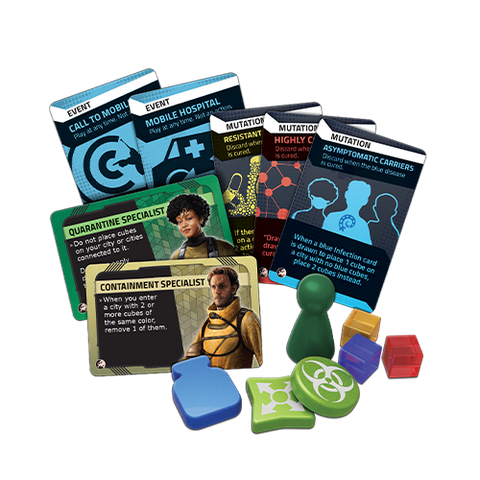 For an extra challenge, players can add Mutation cards, or mix and match components with other games in the Pandemic: Hot Zone series for a totally unique experience. Can you discover the cures and win the game together?