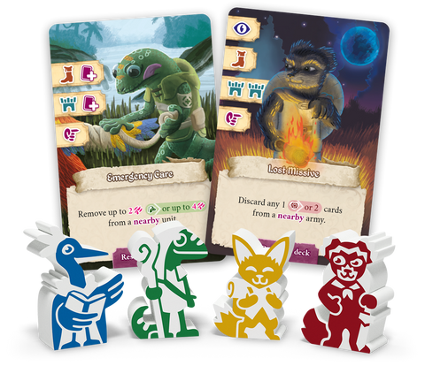 The armies in the game act independently, so you cannot control them directly. Instead, you get multi-use resource cards, which you can use to thwart their plans. You only get a few new cards each round, so you have to figure out when and how to make the best use of them.