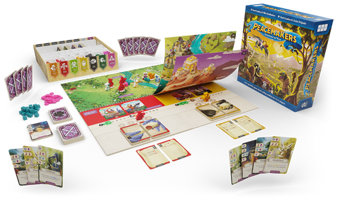 Peacemakers: Horrors of War is a thematic co-operative board game where you attempt to bring peace. The game can be played with up to 4 players, including solo. As an adventurer, you try to stop armed conflicts between animalfolk nations. Do your best to avoid the horrors a destructive war would inflict.