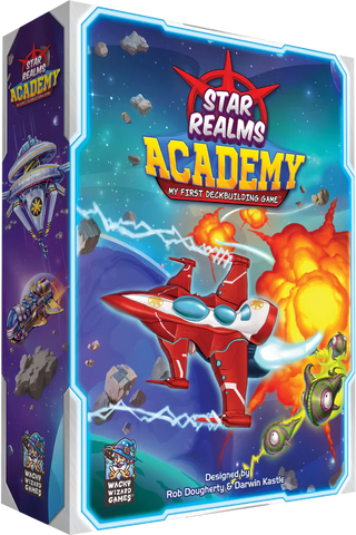 Star Realms Academy “My First Deckbuilding Game” is a fantastic introduction to deckbuilding for both kids and adults. This is a kid-friendly but still fun for grown-ups version of the popular Star Realms deckbuilding game for 2 players. Create a powerful deck of spaceships and bases as you take turns buying from the Shop Row. Less math, no reading necessary, but still tons of fun!