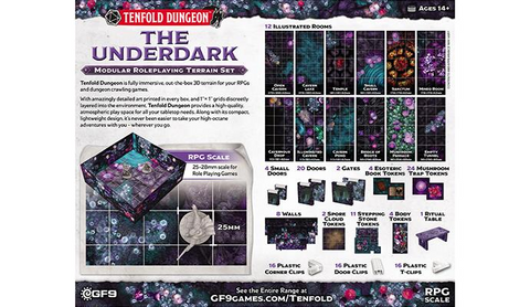 With amazingly detailed art printed in every box, and 1"x 1" grids discreetly layered into the environment, Tenfold Dungeon provides a high-quality, atmospheric play space for all your tabletop needs. Along with its compact, lightweight design, it's never been easier to take your high-octane adventures with you - wherever you go.