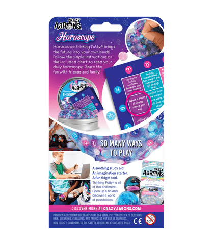 The mysteries of the stars have fascinated us for thousands of years! To this day, we gaze up at the sparkling night sky for guidance. Horoscope Thinking Putty® brings the future into your own hands with knowledge from the signs.
