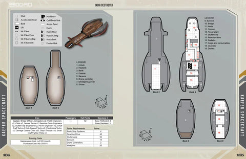 The 33 colony worlds and countless outposts of human space are scattered across a 100 light-year diameter volume of space, along three intricate and complex Arms of stars and anchorages that allow starships to hop from star to star, 7.7 light-years at a time. In order to connect all those worlds with the systems of the Core, starships are required. Interface craft are required to connect the great ships with the worlds below, other ships are need to find raw materials, and to find new worlds. And still other are required to protect all those other ships and the worlds they serve. This book contains many drones, fighters, freighters, landers and warships from across human space, along with a selection of ships used by the three space-faring alien species at the edge of Human space: the Pteranodon-like Sung; the odd little biotech masters, the Pentapods; and the hulking, vaguely-insectoid Kaefers, unrelentingly-hostile and bent on conquest. The 81 ships, drones, and stations in this volume build on the ships presented in 2300AD, and add new opportunities for trade, diplomacy, exploration, and combat.