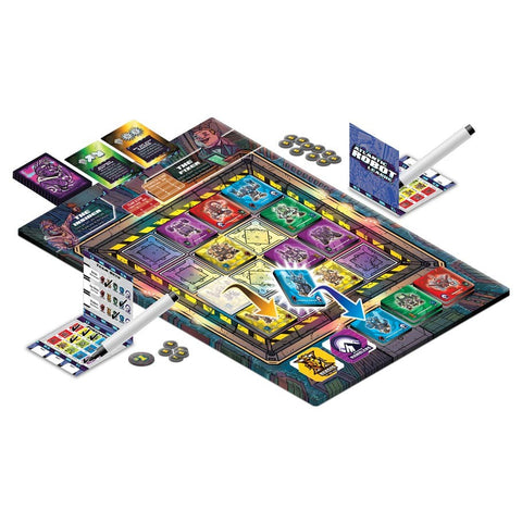 In Atlantic Robot League, players place bets on the outcome of a massive mech battle the size of a dozen city blocks! After bets are placed, they get the chance to influence the battle by sliding the Mechs across the arena, knocking out rivals, and buying Scheme cards from the Insider to bend the rules. Particularly devious gamblers might even pay the Fixer to change their bets during the battle!