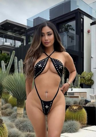 Step into the spotlight with the Bedazzled Rhinestone Bikini Sling, the ultimate accessory for rave lovers, festival goers, and poolside fashionistas. The sparkling rhinestones make this bikini sling a true eye-catcher, while the adjustable straps ensure a perfect fit. Whether you're dancing at a festival, splashing around at a pool party, or simply soaking up the sun, this bikini sling guarantees you’ll shine like never before.