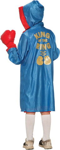 Get ready to rumble with our Blue Boxer Boy Costume! This knockout outfit will have you feeling like a true champion, ready to take on any opponent. Perfect for Halloween, costume parties, or just a day of imaginative play, this costume is sure to be a hit (see what we did there?)! This costume includes a blue robe with a hood, matching shorts attached to a white muscle chest top, a pair of boxing gloves, and championship belt to complete your winning look.