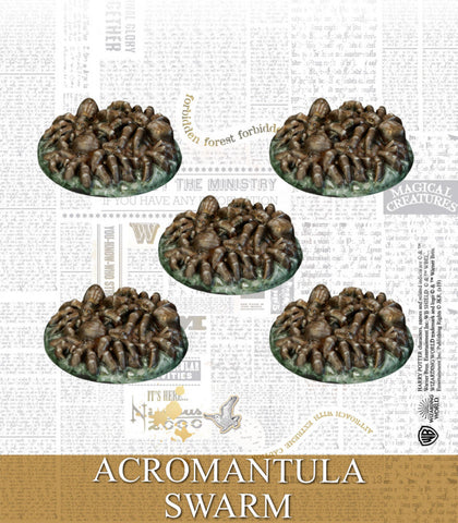- 13 highly detailed resin miniatures and their Character Cards (Harry Potter, Hermione Granger, Ron Weasley, 4 Death Eaters, 1 Acromantula, 5 Small Acromantula Swarms)