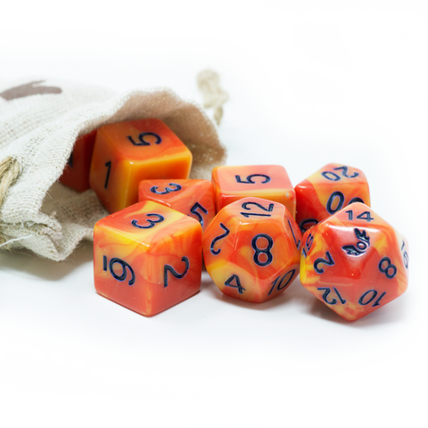 Set of 10 Alderheart Ember Edition polyhedral dice. Includes pouch.