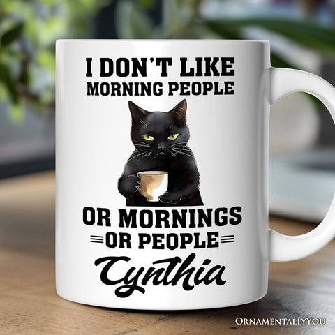 I Don't Like Morning People Personalized Mug, Sarcastic Black Cat Lover Gift With Custom Name